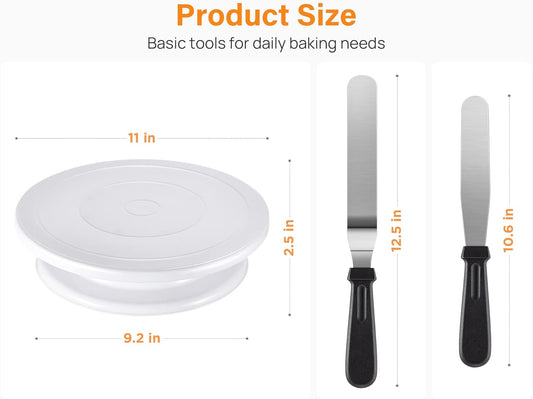 71 PCs Cake Decorating Supplies Kit with Cake Turntable, 12 Numbered Icing Piping Tips, 2 Spatulas, 3 Icing Comb Scraper, 50+2 Piping Bags, and 1 Coupler for Baking