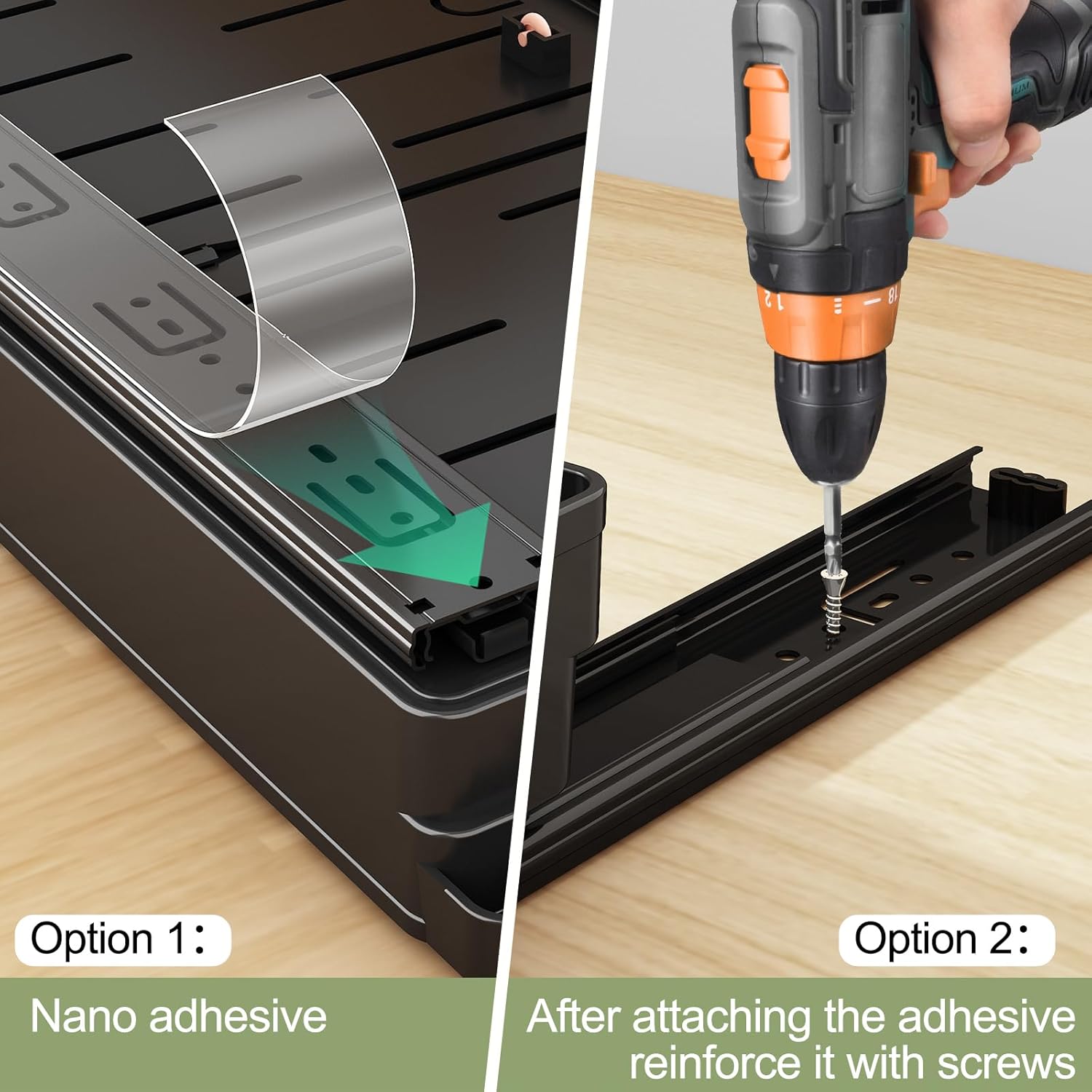 - Easy Installation: This kitchen slide drawer features adhesive nano film, convenient and durable. And you can also choose another way, after applying the 3M tape, reinforce it by driving in screws (all screws are included). Both methods have been thoroughly tested and proven to be very reliable.