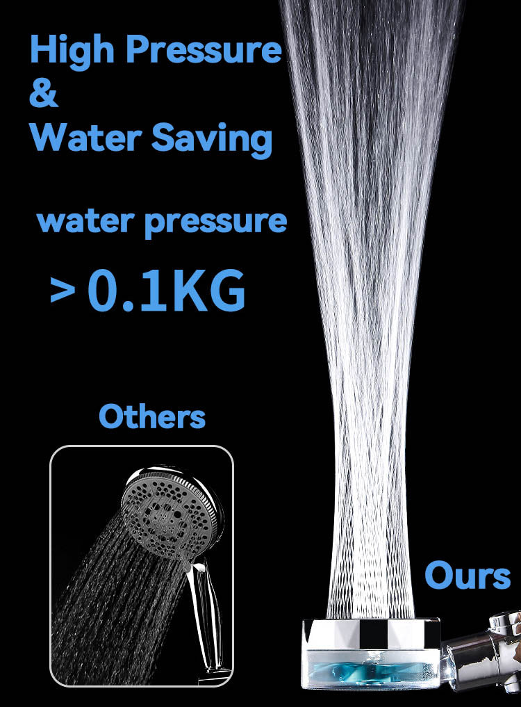 High-pressure showerhead: Featuring a unique internal structure and air intake technology, it provides a powerful water flow even with low water flow and low water pressure. You will never be bothered by low water pressure in your home again. A great alternative to your high-pressure showerhead.